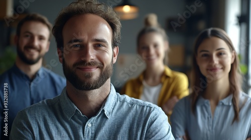 Group people and man in portrait at startup with smile support or creativity in modern office Women staff and happy for team building for solidarity at media agency for collaboration i : Generative AI
