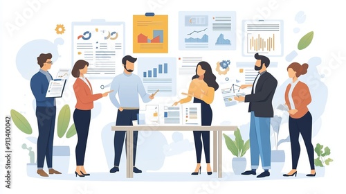Groups of people point to sales documents during business meetings startup company sales team discussions brainstorming sessions and sales performance summaries emphasizing the sales