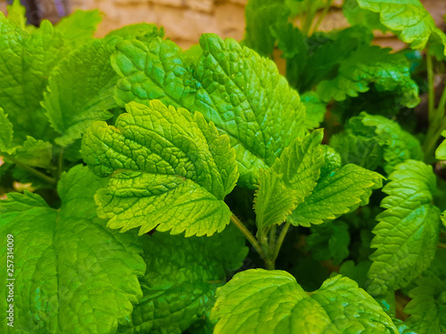 Growing Mint plant in the garden with full frame