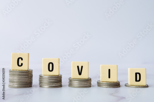 Growing money graph in a row of coins. Econimical crisis concept due to coronavirus COVID-19 spread in the world