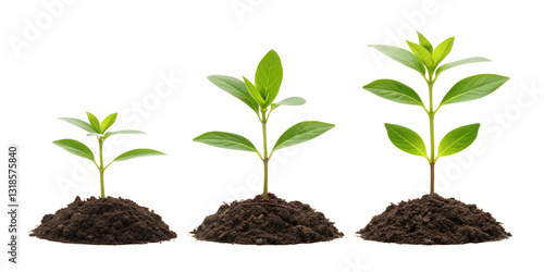 Growing Young Plant in Soil on White, Fresh Plant Growth, Healthy Soil and Plant Display, Cut Out