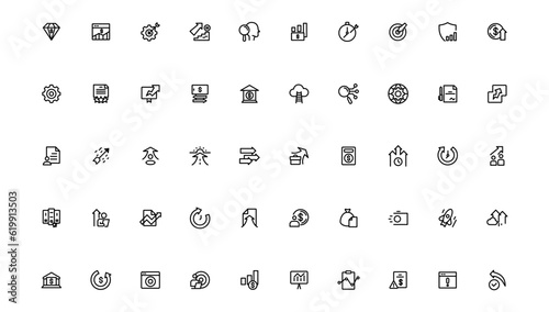 Growth & Success icon set. Successful business development, plan and process symbol. Goals and Target Related.Outline icon.