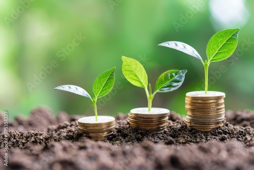 Growth of Plants on Stacked Coins Representing Financial Investment