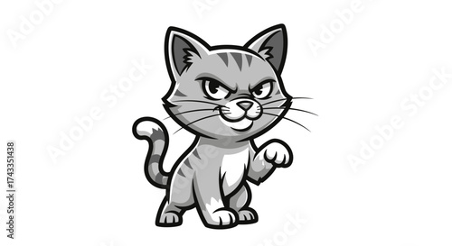 Grumpy Cartoon Cat Character with Striped Fur and Angry Expression on White Background