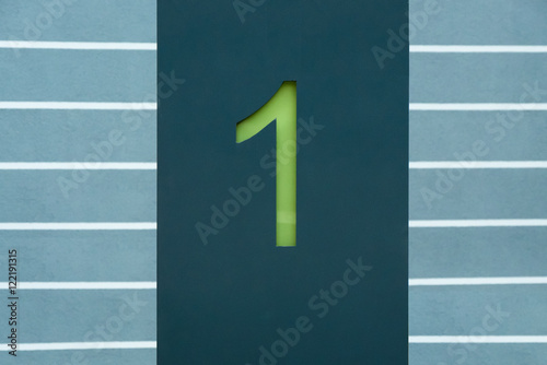 Grüne 1 auf petrolfarbenen Hintergrund mit weiß gestreiften Hintergrund