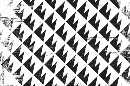 Grunge abstract geometric pattern. Horizontal black and white backdrop.