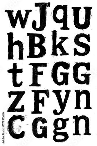 Grunge Block Alphabet Letters in Vintage Stamp Style - Transparent Background