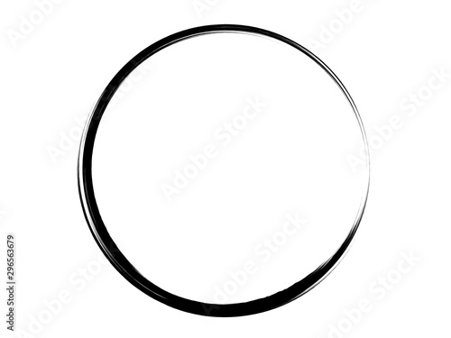 Grunge circle made of black ink.Grunge oval shape made with brush for marking.