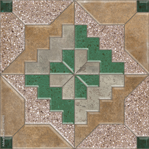Grunge concrete wall with ornaments and prints. Digital tiles design.