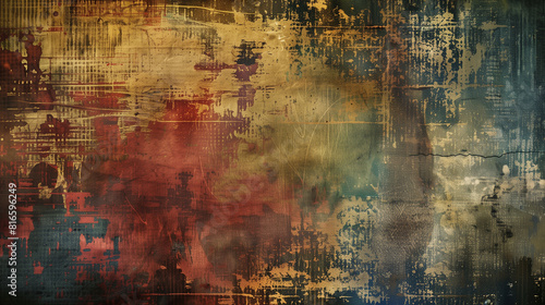 Grunge Distressed textures, faded colors, ripped edges.