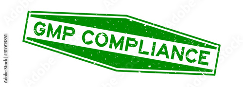 Grunge green GMP (Abbreviation good manufacturing practice) compliance word hexagon rubber seal stamp on white background