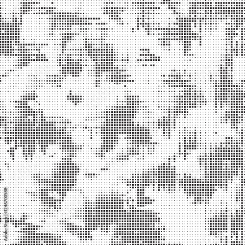 Grunge halftone background with square dots. Black and white dots grunge effect background. Vector abstract overlay. Grunge halftone black dots texture background.