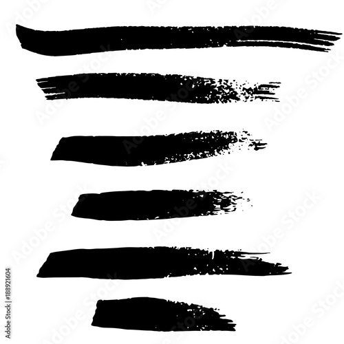 Grunge ink brush strokes. Freehand black brushes. Handdrawn dry brush black smears. Modern vector illustration.