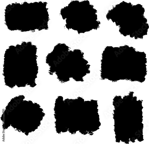 Grunge Ink Brushstroke and Paint Splash Vector Set. Dirty Artistic Design Elements with Splatter, Blots, and Hand-Drawn Stains Isolated on White Background.