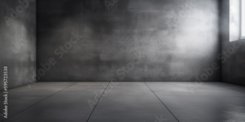 Grunge interior room with concrete wall and floor. Empty concrete space. Generative AI