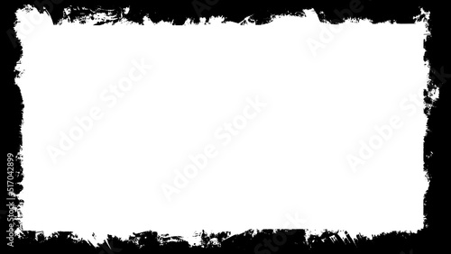 Grunge painted frame background texture. Vintage distressed black and white abstract artistic acrylic paint border. Blank 8k 16:9 empty isolated grungy rough brush stroke corner design backdrop..