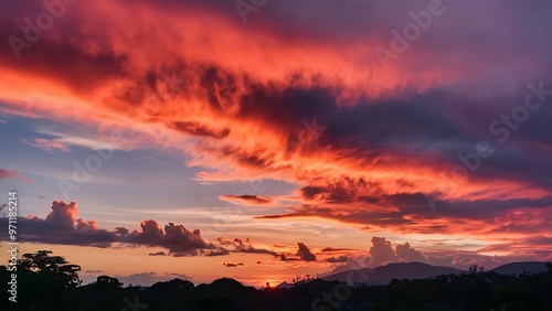 Grunge rad sky background with space for text