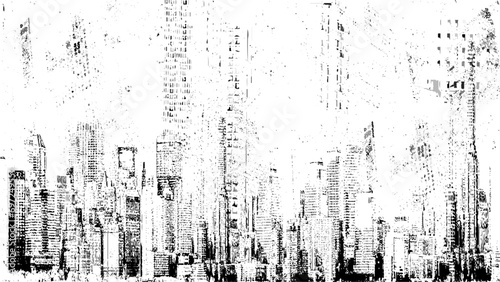 Grunge rough dirty background. Brushed black paint cover. Overlay aged grainy messy template. Renovate wall scratched backdrop. Empty aging design element. Grunge city view. Vector