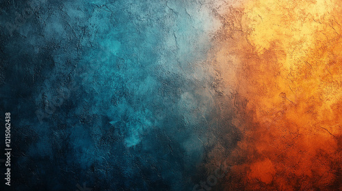 Grunge wall backdrop featuring dark blue orange and teal tones minimalistic modern style with blurred texture bright empty blank caption space symbolizing chaos creativity and individuality