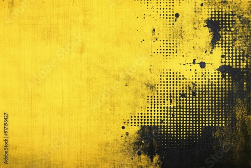 Grunge Yellow and Black Background with Halftone and Paint Splatter