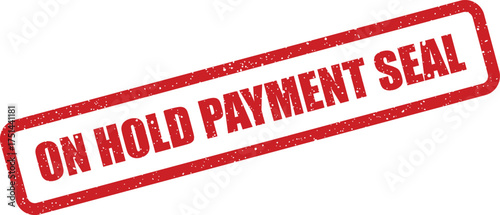 Grungy red rubber stamp showing ON HOLD PAYMENT SEAL to denote a halted financial transaction