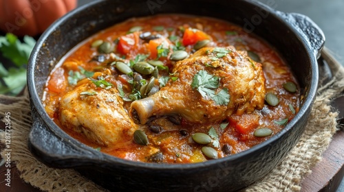 Guatemalan pepian, a thick, spiced stew with chicken, tomatoes, and pumpkin seeds.