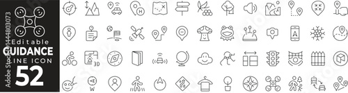 Guidance & Geolocation Icon Set: A Line Icon Collection Featuring Map, Tracking, Directions, Location Pin, and More
