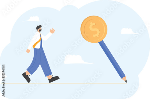 guide, help, or hint for success. businessman following a trajectory drawn by a pencil. the road to success. business and travel. flat cartoon illustration. vector concept design