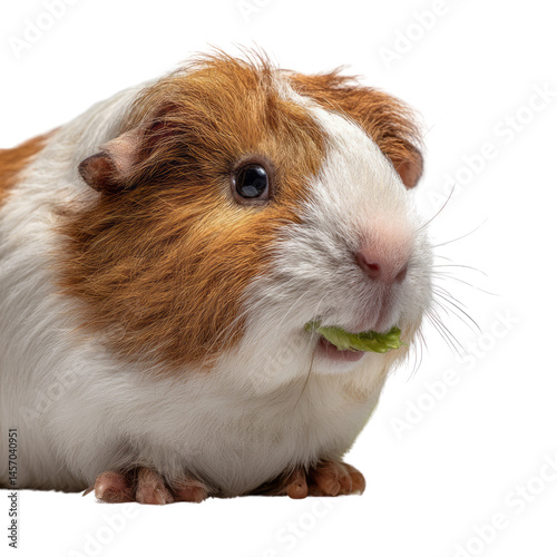 Guinea pig eating greenery home animal photography studio close-up transparent background