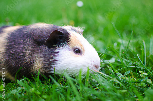 guinea pig walks in the fresh air and eating