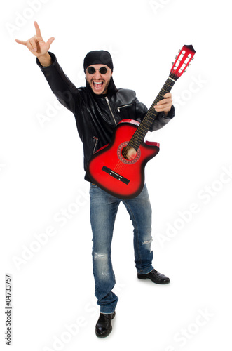 Guitar player isolated on the white