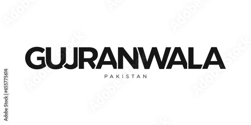 Gujranwala in the Pakistan emblem. The design features a geometric style, vector illustration with bold typography in a modern font. The graphic slogan lettering.