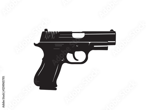 Gun silhouette icon. Pistol silhouette. Black handgun symbol. Vector shape isolated on white background. Vector illustration.