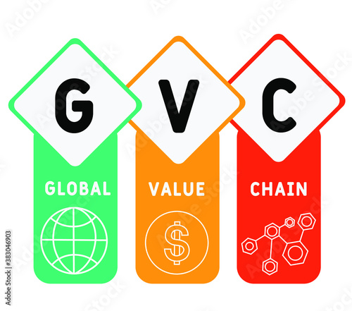 GVC - Global Value Chain acronym business concept background. vector illustration concept with keywords and icons. lettering illustration with icons for web banner, flyer, landing page