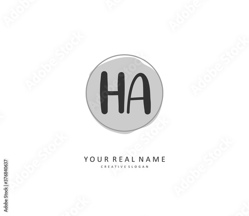 H A HA Initial letter handwriting and signature logo. A concept handwriting initial logo with template element.
