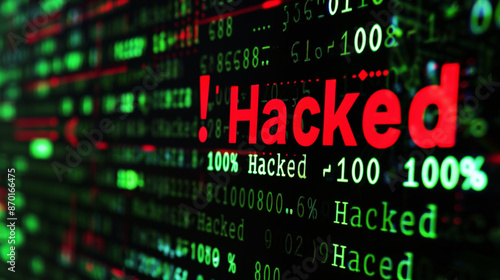 hacked text on Bits and bytes binary code on a dark background. Concept of hacking cybersecurity. ai generative