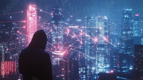Hacker are planning to hack and attack networks and cyber security , innovative Smart city and graphs with statistics to analyze business potential and predict future developments in company growth.