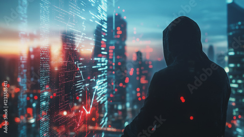 Hacker are planning to hack and attack networks and cyber security , innovative Smart city and graphs with statistics to analyze business potential and predict future developments in company growth