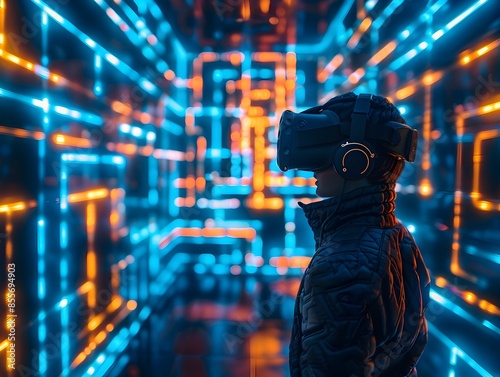 Hacker Navigating Through Virtual Reality Data Maze Evading Digital Security Measures