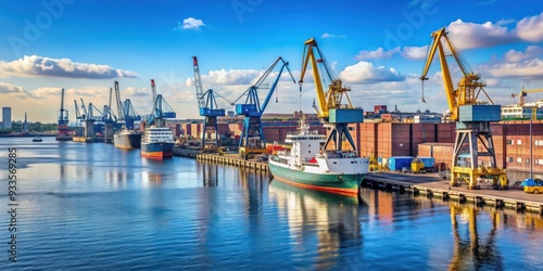 Hafen Kiel port with ships and cranes in industrial setting, Kiel, Germany, port, harbor, ships, cranes