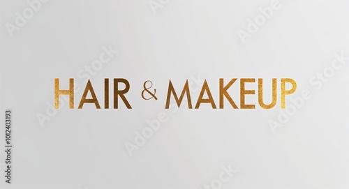 Hair and makeup word lettering gold hue elegant concept on plain white background