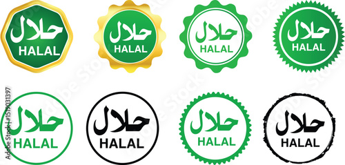 Halal Round Logo Vector. Halal food labels Icon. arabic product emblem, Halal logo Green Vector illustration set