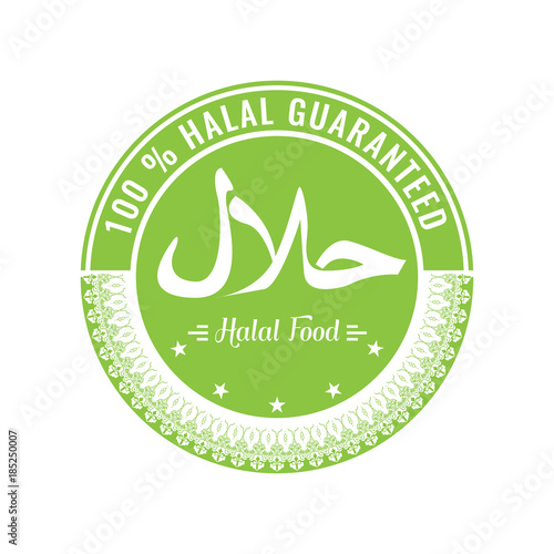 Halal sign symbol design. Halal certificate tag with geometric ornament circle design.