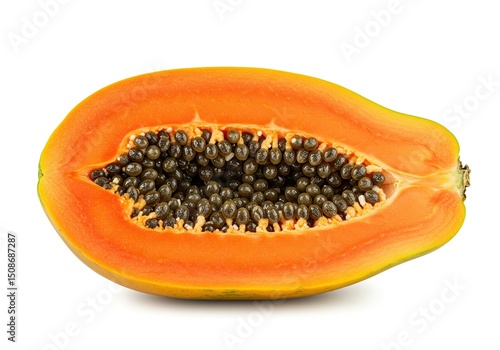 Half a papaya, orange flesh, dark seeds
