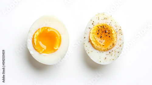 Half a soft-boiled egg, with a vibrant contrast between the yolk and white