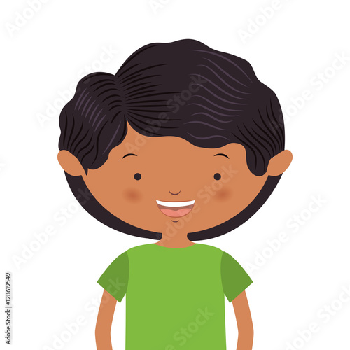 half body wavy hair boy with t-shirt vector illustration