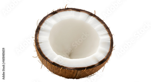 Half Coconut Displays White Flesh and Brown Shell on Transparent Background Studio Shot