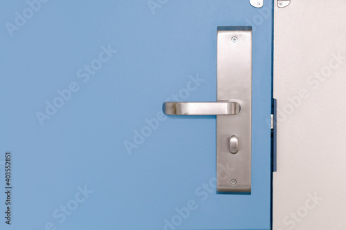Half opened door to a living room. Door handle, door lock.