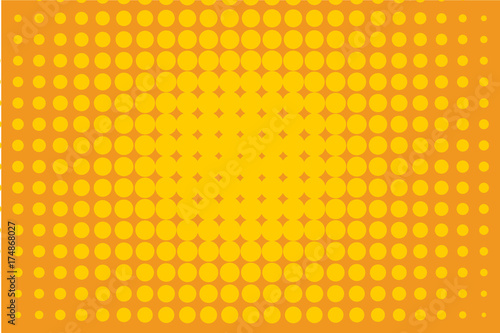 Halftone background. Comic dotted pattern. Colorful orange-yellow vector illustration