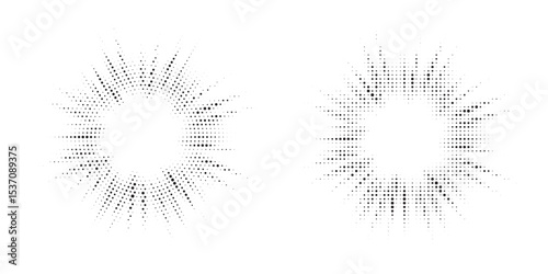 Halftone circle frame background set. Round border Icon using halftone random circle. Grunge circular stain. Vector illustration.